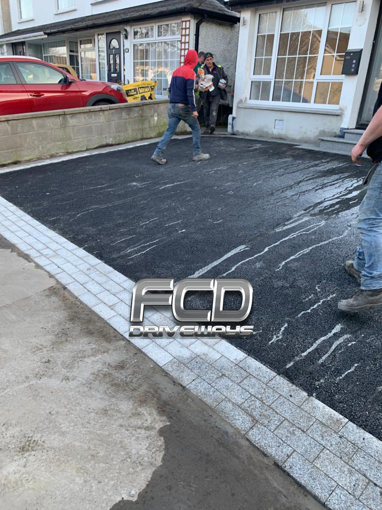 Complete excavation of old driveway complete new foundations, new drainage had to be fitted Marshalls block paving edging all the way around and finished with 10 mil hot roll tarmac machine rolled to a solid finish